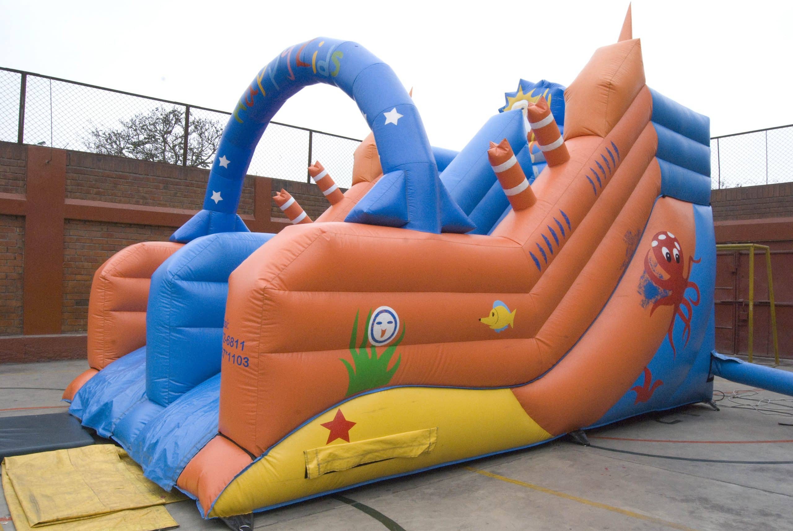 Con su diseño colorido y temática marina, este inflable invita a los niños a vivir una experiencia emocionante llena de risas y energía. Ideal para quienes aman las alturas y la velocidad, su estructura de doble tobogán garantiza pura adrenalina en cada deslizamiento.