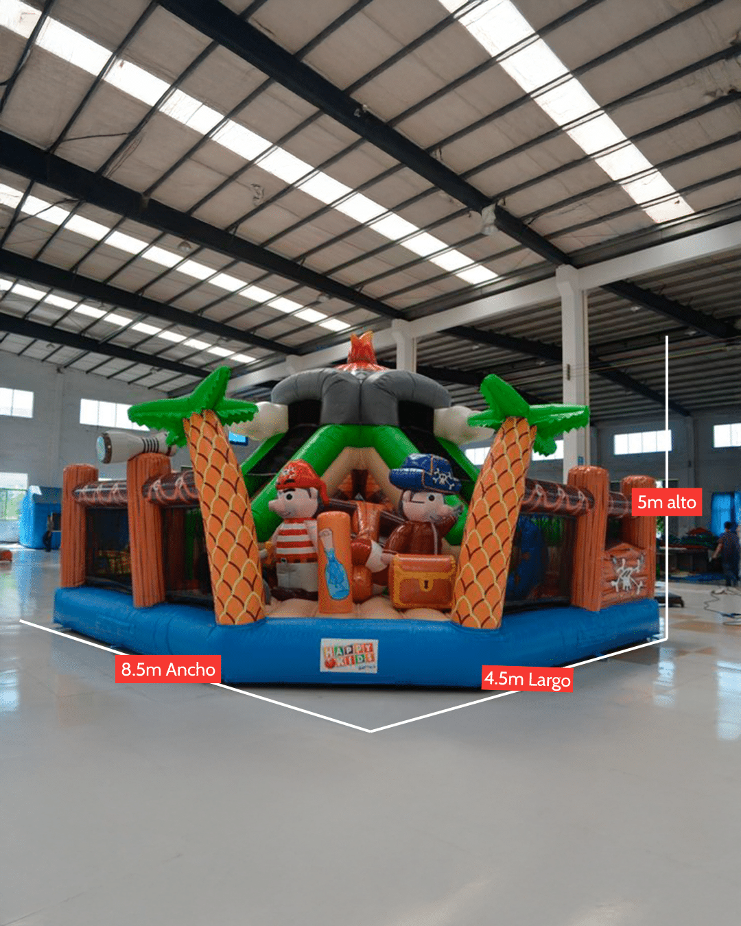 El Inflable Isla del Tesoro de Happy Kids Games invita a los pequeños piratas a explorar un mundo lleno de color, imaginación y diversión. Con palmeras, cofres del tesoro y personajes piratas inflables, este juego es una experiencia completa para vivir horas de alegría y movimiento.
