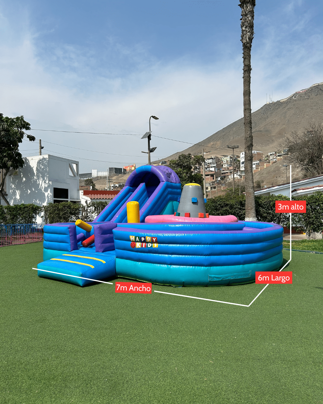 El Inflable Laberinto de Happy Kids Games es una atracción única que combina retos, obstáculos y un tobogán gigante dentro de un circuito lleno de color. Ideal para niños que disfrutan de explorar, competir y superar desafíos de forma divertida y segura.