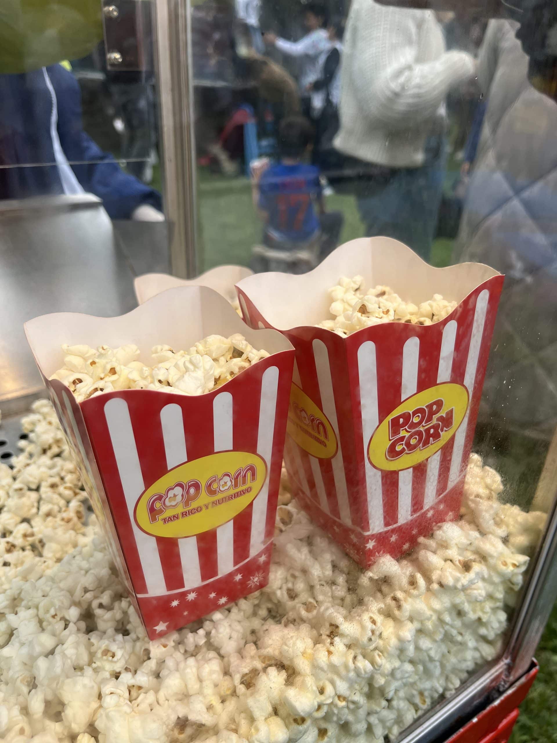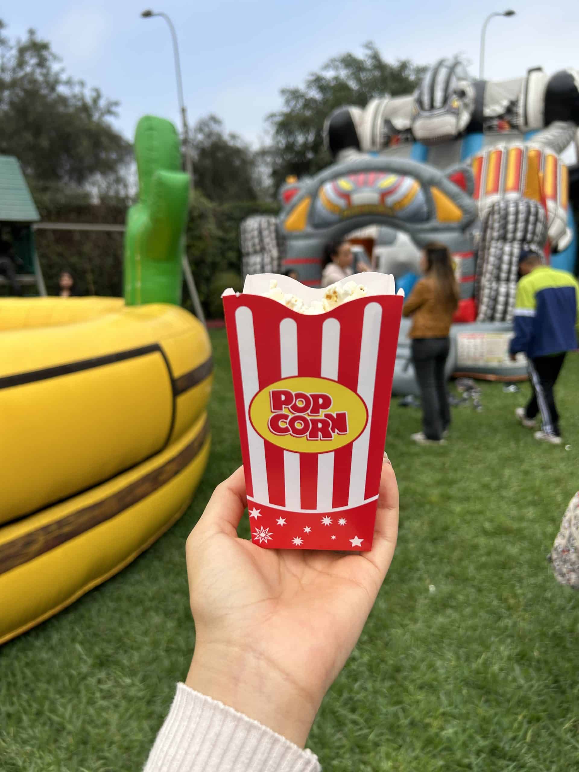 Nuestros carritos de snacks ofrecen el clásico pop corn en cajitas de cine, perfecto para acompañar la diversión en cumpleaños, ferias, eventos escolares, corporativos y familiares.
