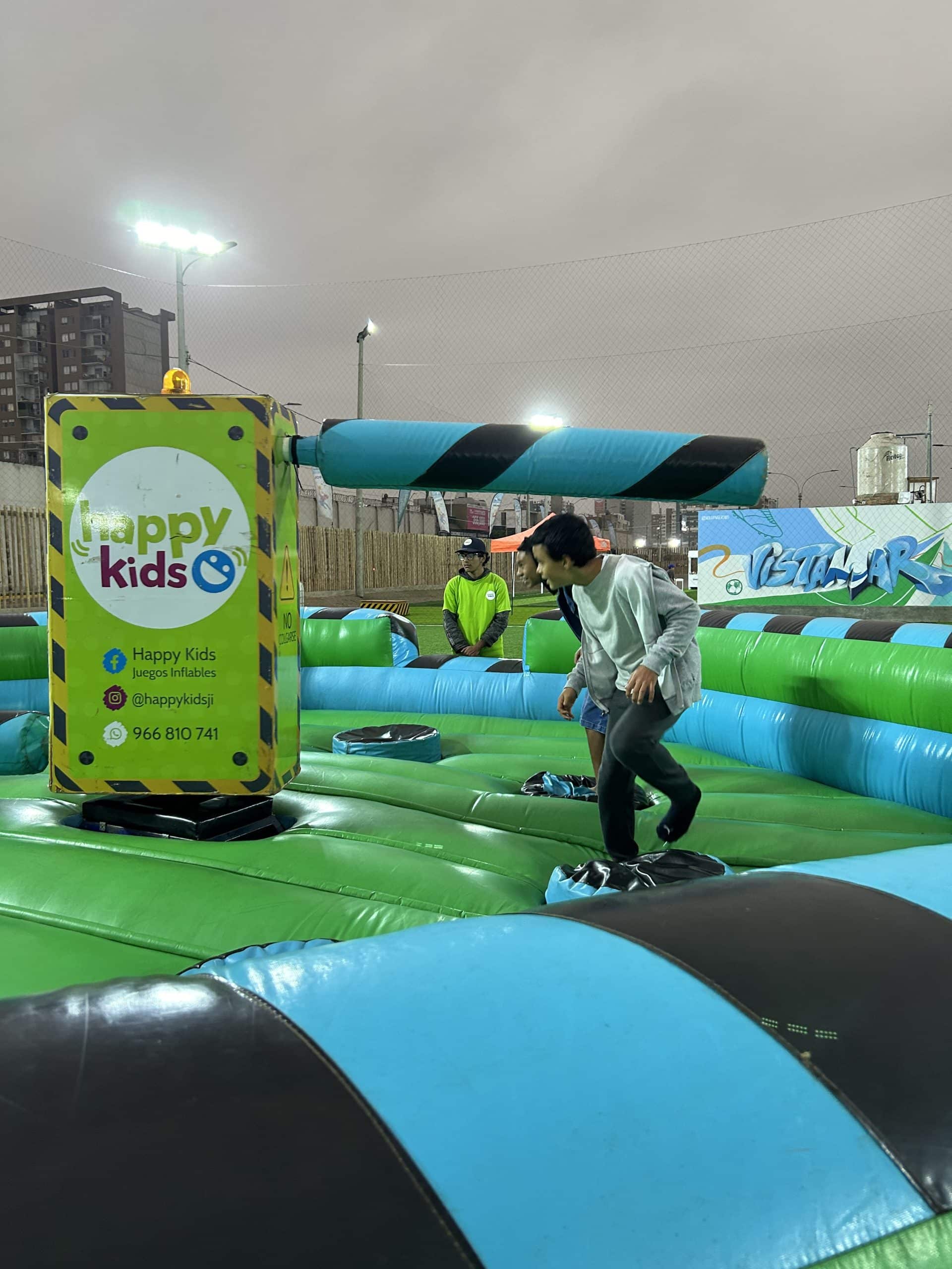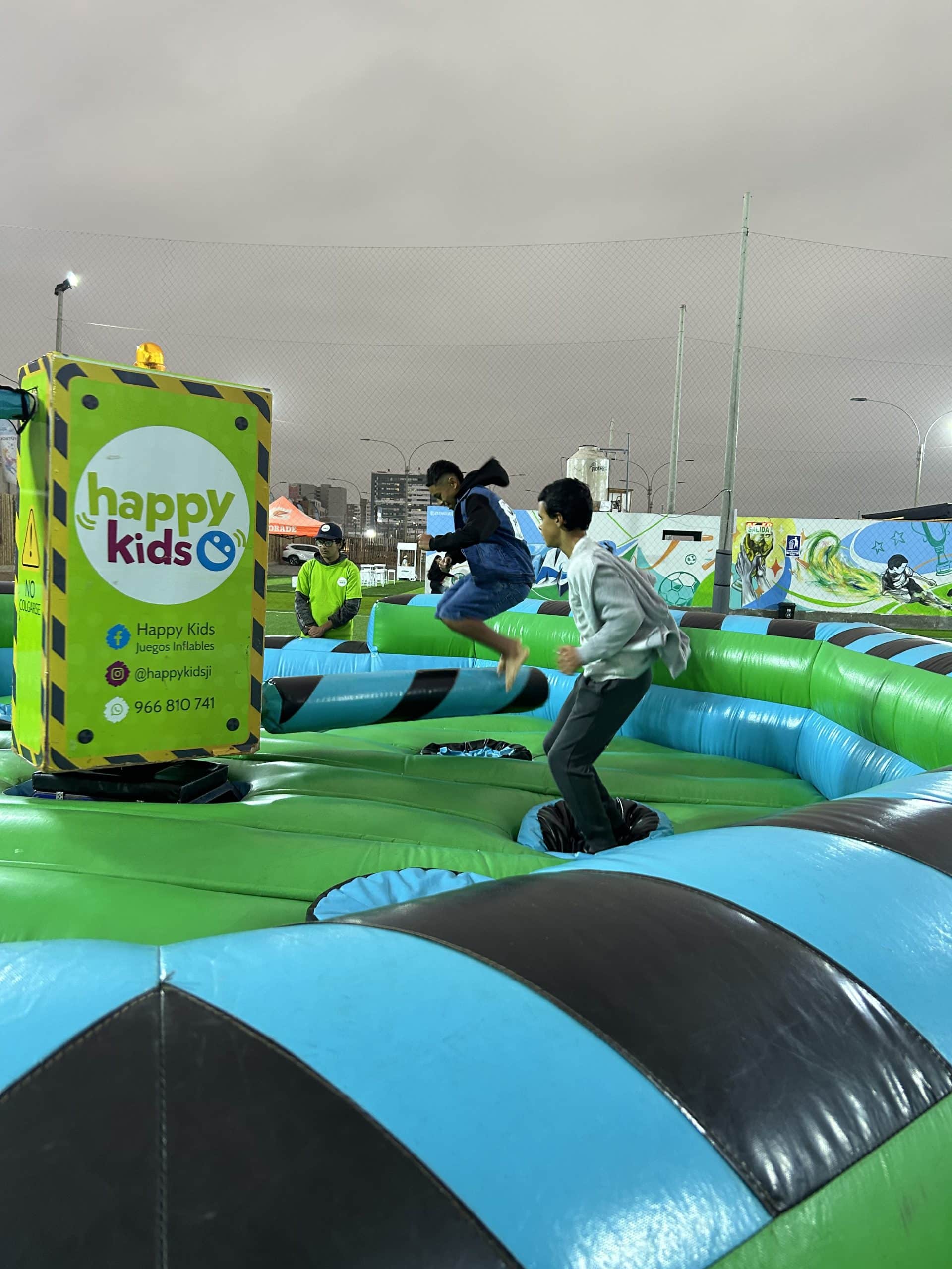 Pon a prueba tus reflejos y equilibrio con el increíble Up & Down, uno de los juegos inflables más emocionantes de Happy Kids Games. En esta competencia, los participantes deben saltar, agacharse y esquivar las barras giratorias que se mueven sin parar en distintas direcciones. ¡Solo el más rápido y hábil logrará mantenerse de pie!